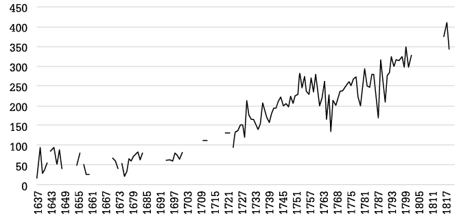 Fuente: ahmm, Libros de bautismos 1637-1820