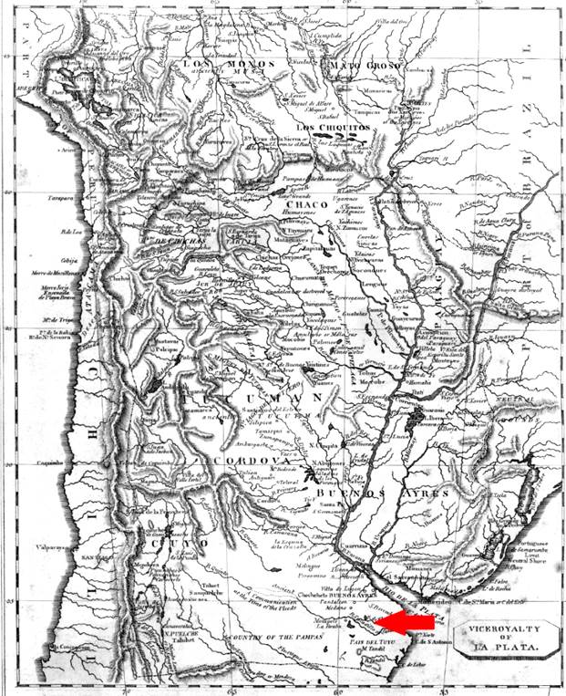 Fuente: Viceroyalty of La Plata. Attributed:Arrowsmith, Aaron, Lewis, Samuel. Boston: Published by Thomas & Andrews. 1812.